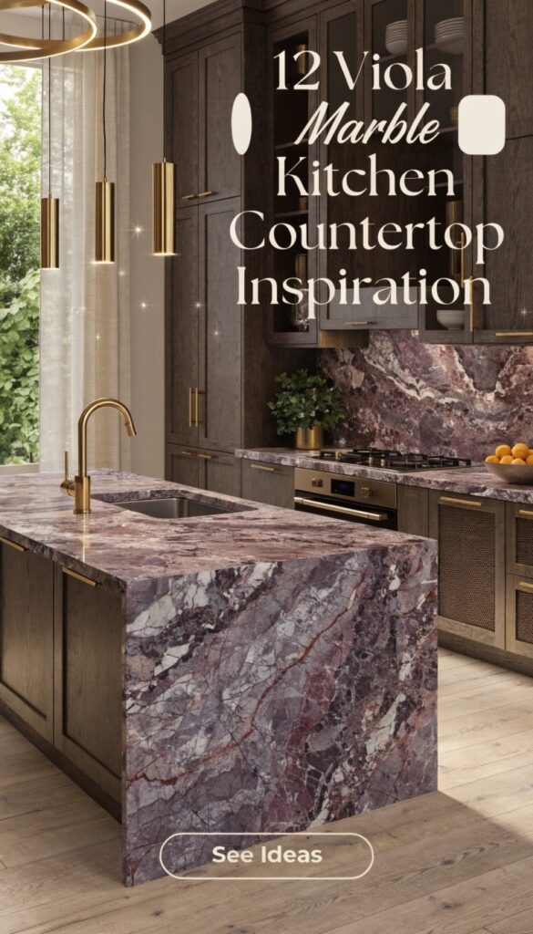 Step into a world where bold veining meets refined elegance with Viola marble kitchen countertop inspiration.