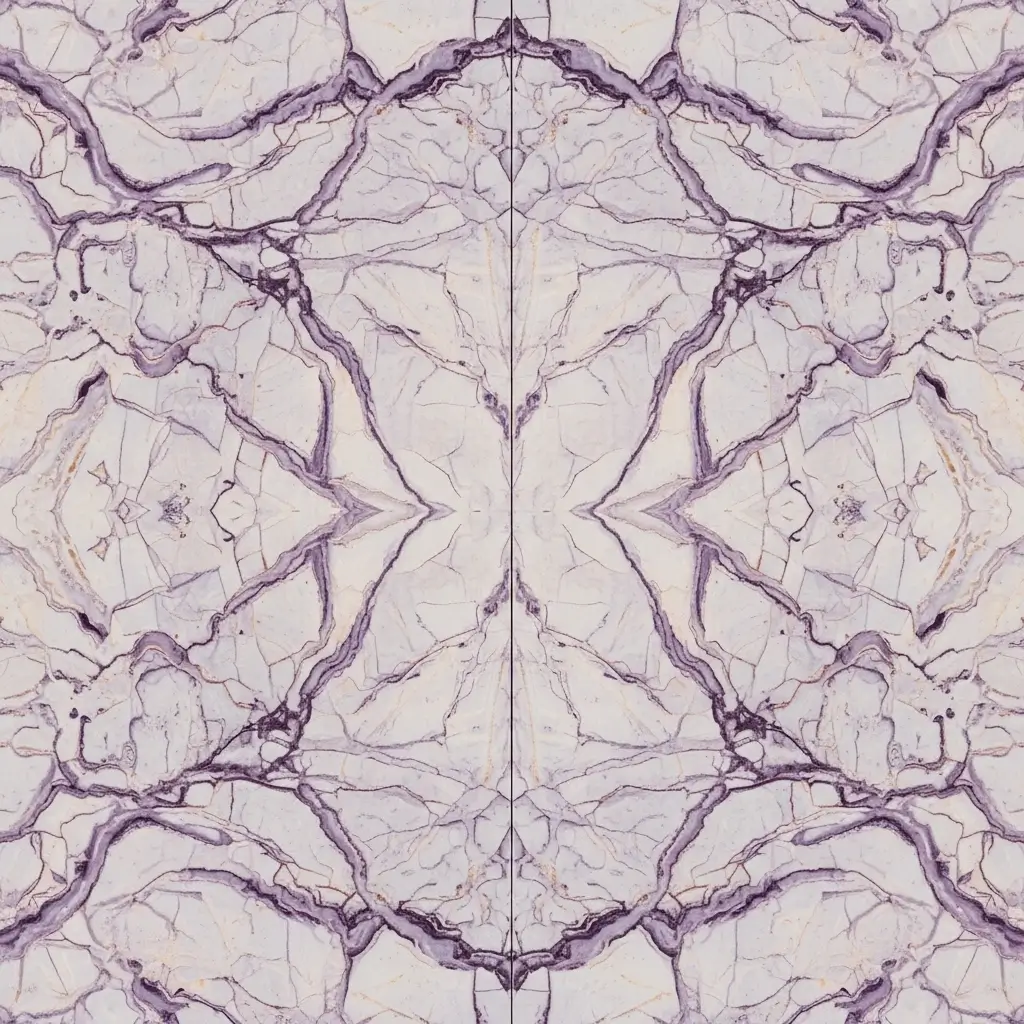 This technique is the ultimate luxury application for Calacatta Viola, as it turns the veining into a Rorschach-like piece of art.