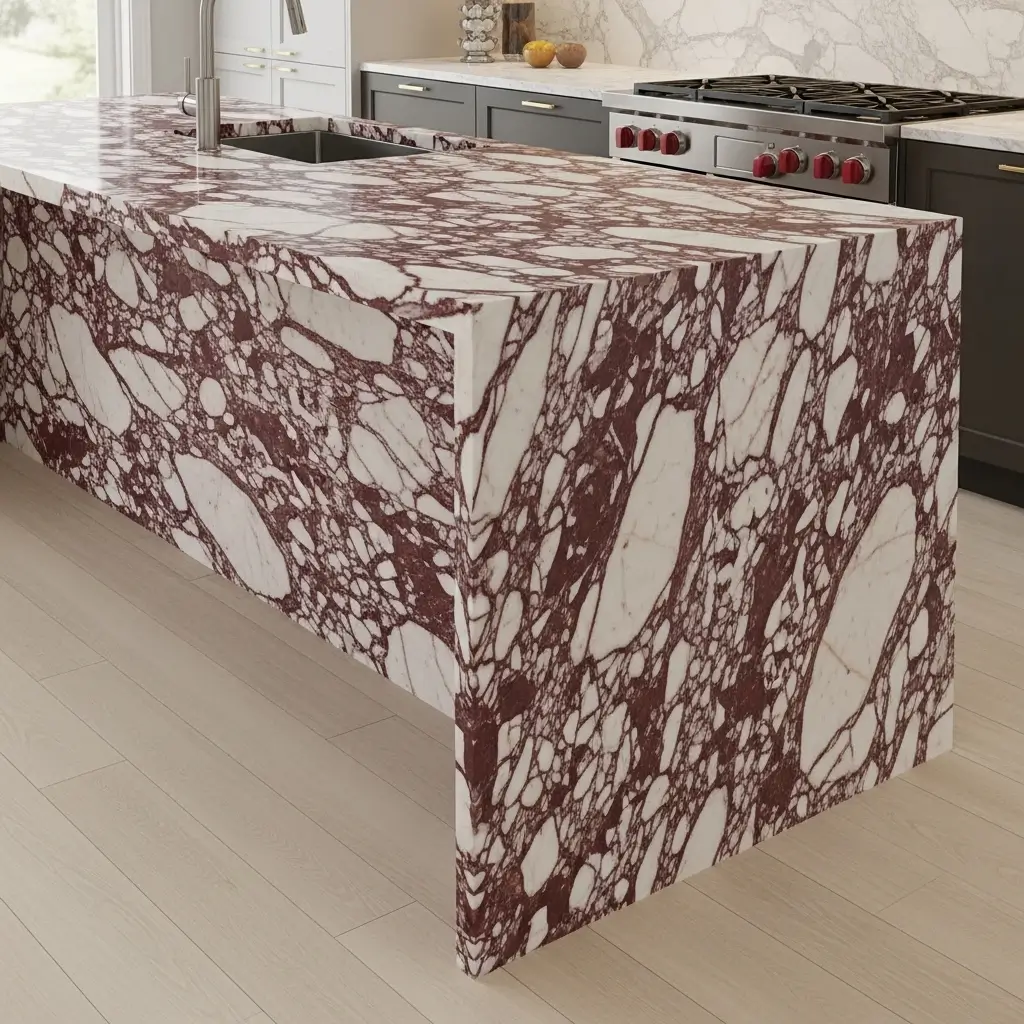 | Breathtaking Aesthetic: Unique burgundy veining that acts as natural art. | High Cost: One of the more expensive marble varieties due to rarity. |