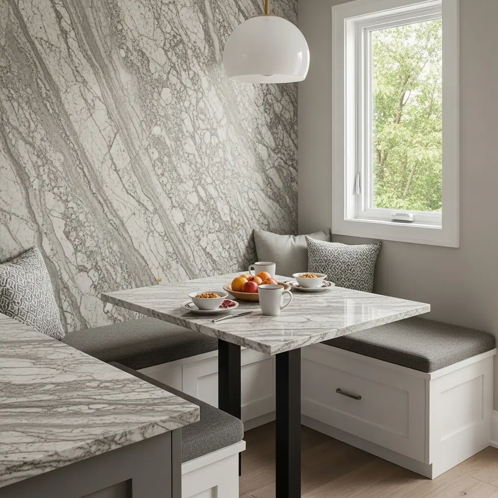 Using this premium stone in a secondary dining area elevates everyday moments like morning coffee or a quick lunch.
