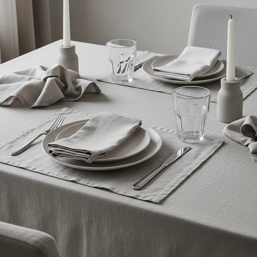 Invest in high-quality linen napkins, placemats, and tablecloths in soft, neutral shades like oatmeal, white, or pale gray.