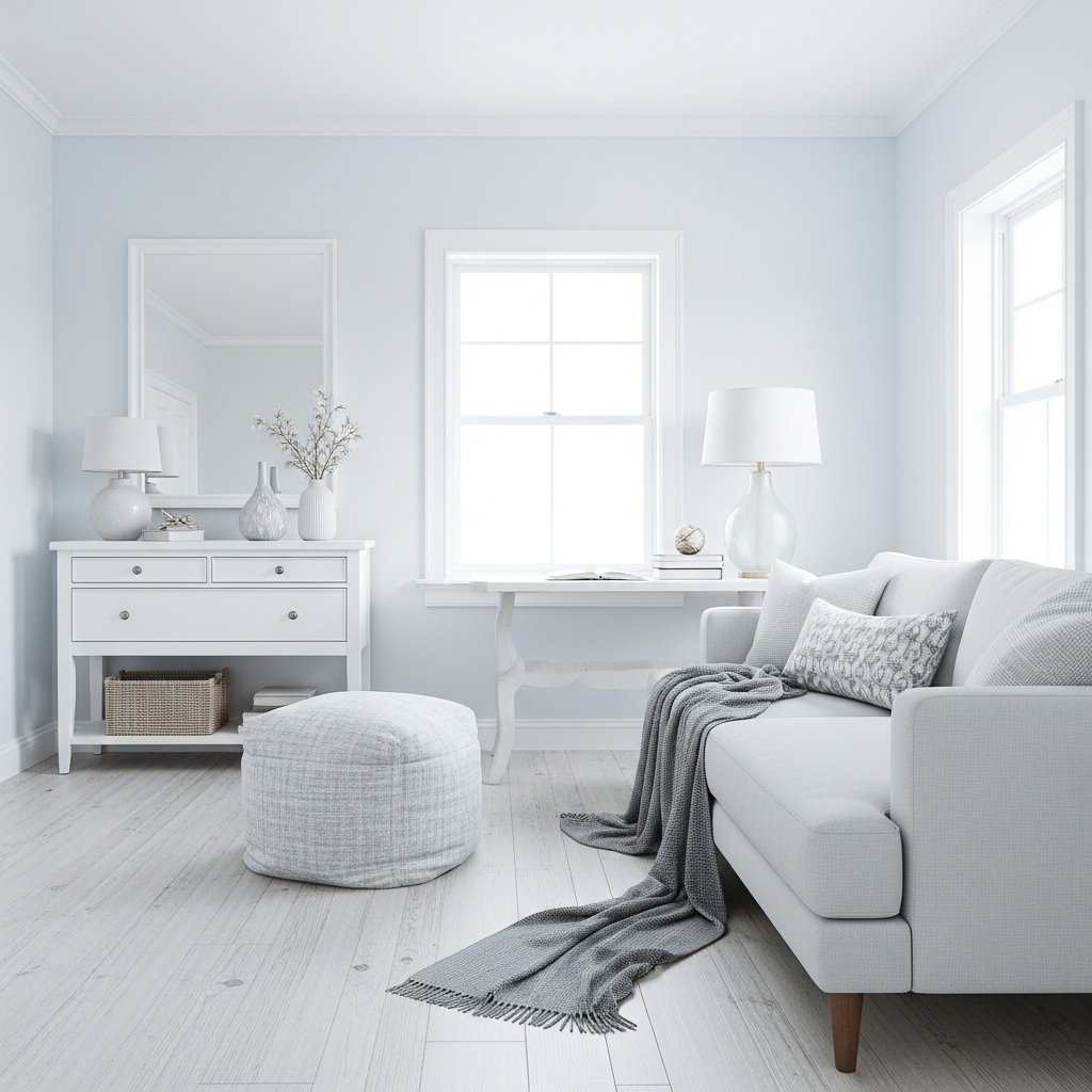 A monochromatic or low-contrast color scheme allows the textures of the wood and fabrics to take center stage. Avoid dark or overly saturated colors, as the goal is to create a serene, cloud-like atmosphere that feels instantly relaxing the moment you walk in.