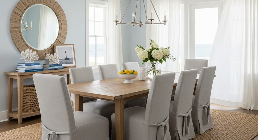 Q: Do I need to have a beach house? A: Not at all. This aesthetic is a mindset. It works in apartments, farmhouses, and suburban homes because it focuses on light, comfort, and neutrals rather than specific “beach” motifs like seashells or anchors.