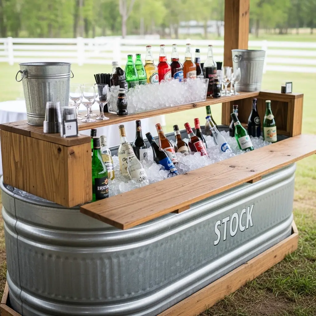 Stock tanks are staple items on any farm, and they make incredible beverage stations.