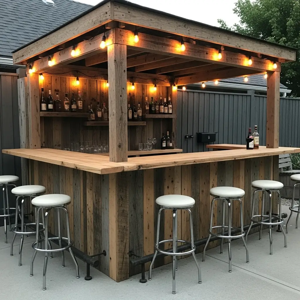Crafting a backyard bar using reclaimed wood brings an authentic, rustic charm to your outdoor entertaining space.