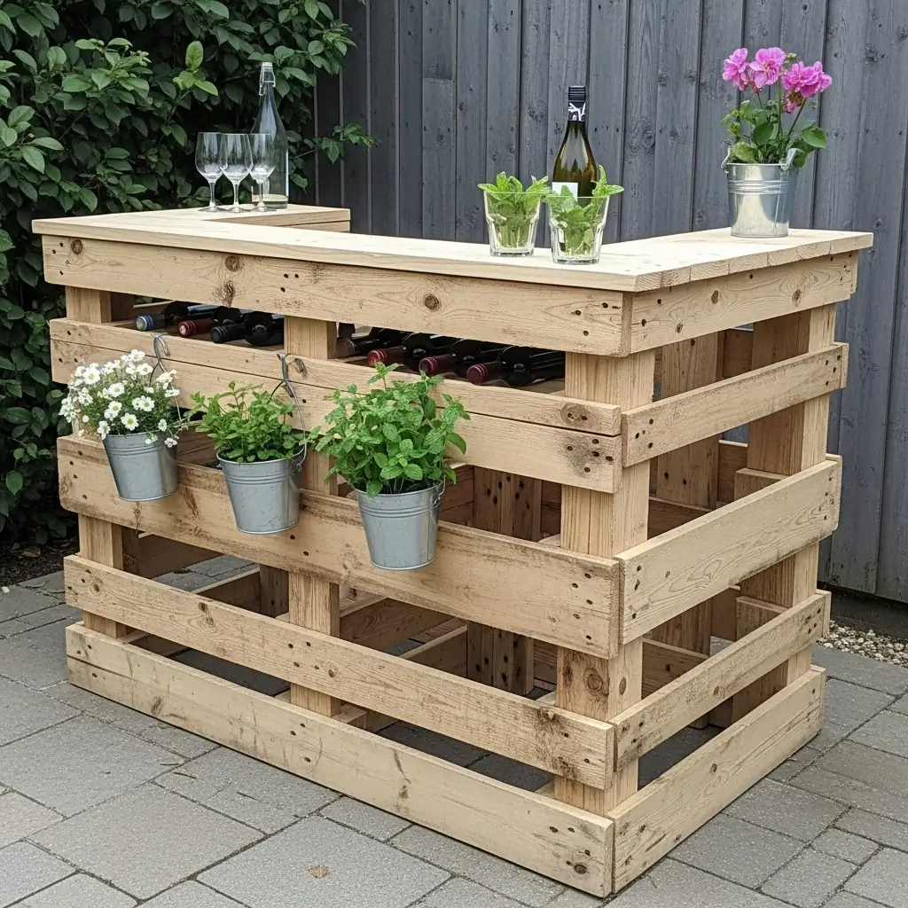 For a budget-friendly and eco-conscious project, an upcycled pallet bar is a fantastic option.