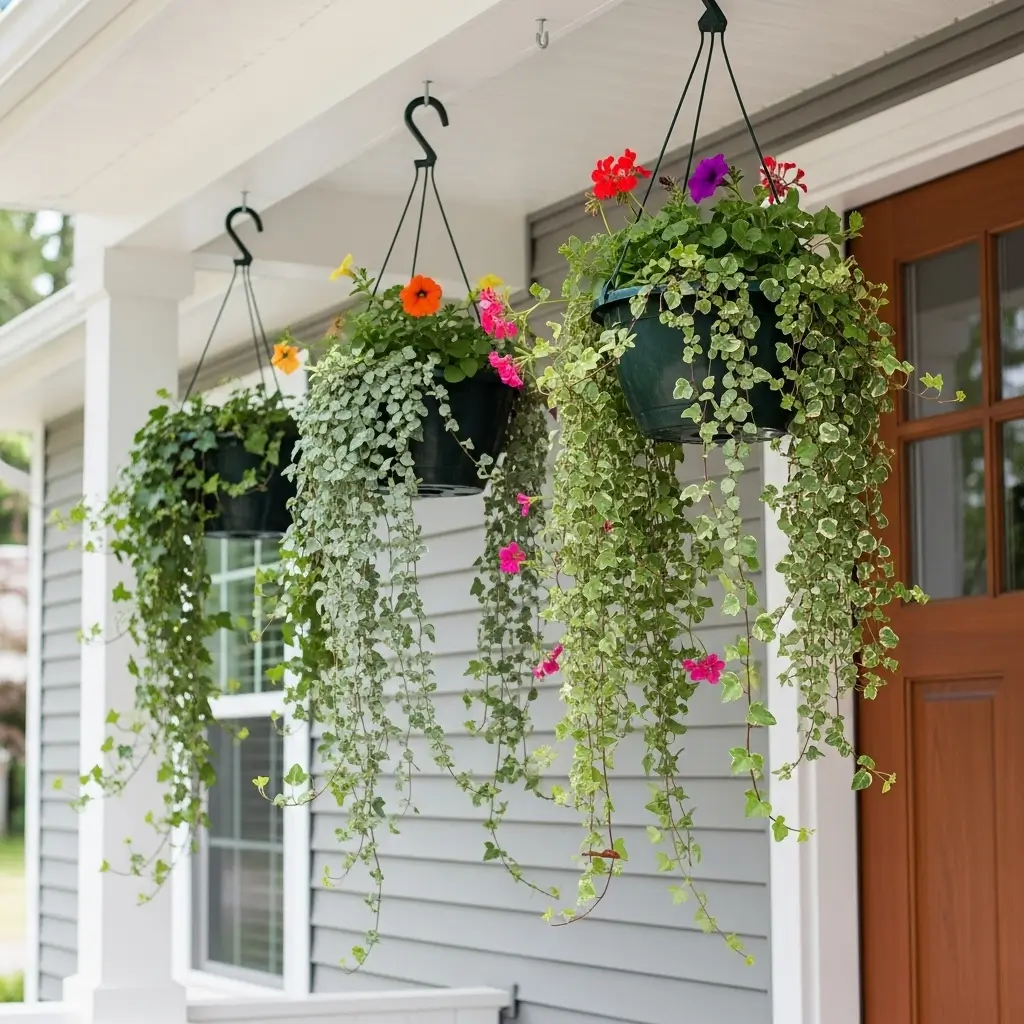 When floor space is incredibly limited, the best direction to look is up. Hanging floral baskets are a fantastic way to add lush greenery and bright spring colors without cluttering your walking path.