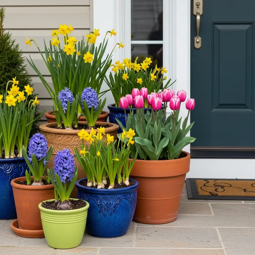 Introduce the vibrant energy of the new season by clustering potted spring bulbs around your front door. Tulips, daffodils, and fragrant hyacinths are quintessential spring flowers that thrive beautifully in containers. Choose pots in varying heights and complementary colors to create an eye-catching visual display.